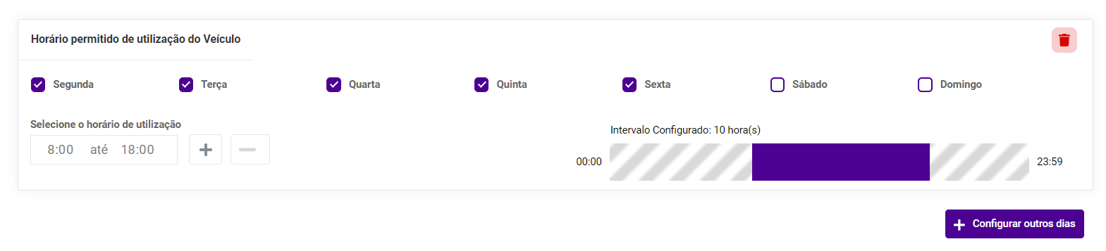 - Configurar os dias e horários em que os veículos poderão ser utilizados.